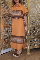 The Helen Cropped Shirt is designed to pair beautifully with its matching printed pants creating an effortlessly coordinated look. It can just as easily be styled with jeans, khaki or beige pants for a more relaxed, everyday feel. The print blends perfectly with earth-tone accessories—suede leather, brown, beige, and all camel tones are simply divine to complement it. The shirt comes in STD size and fits XS-L.