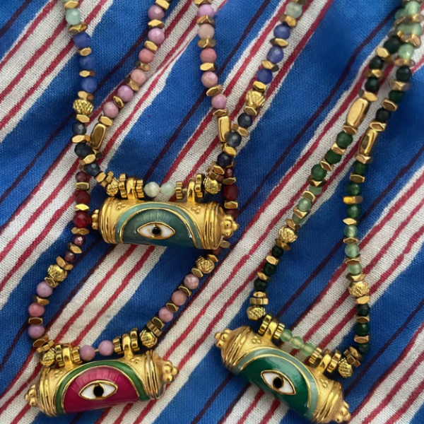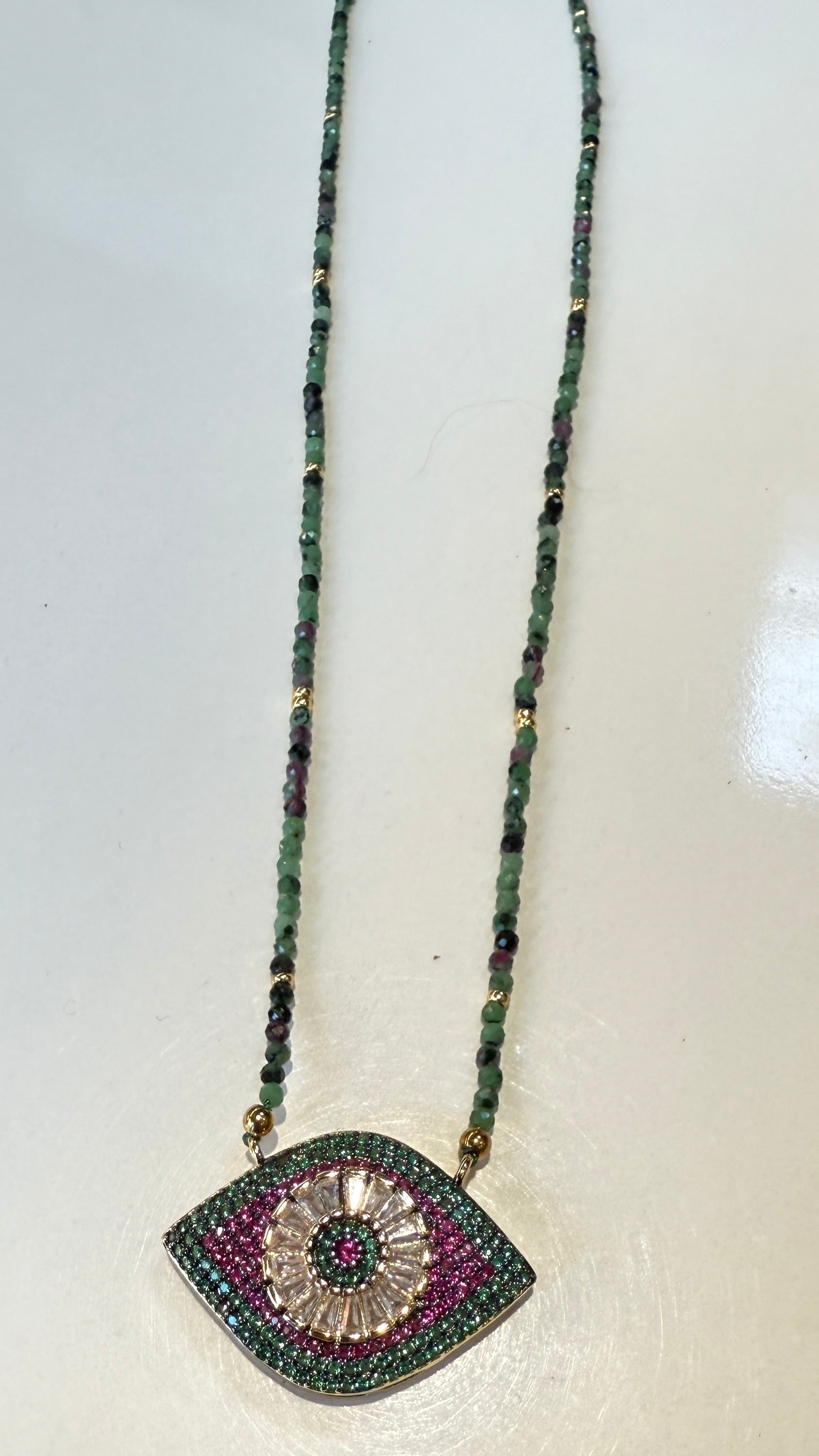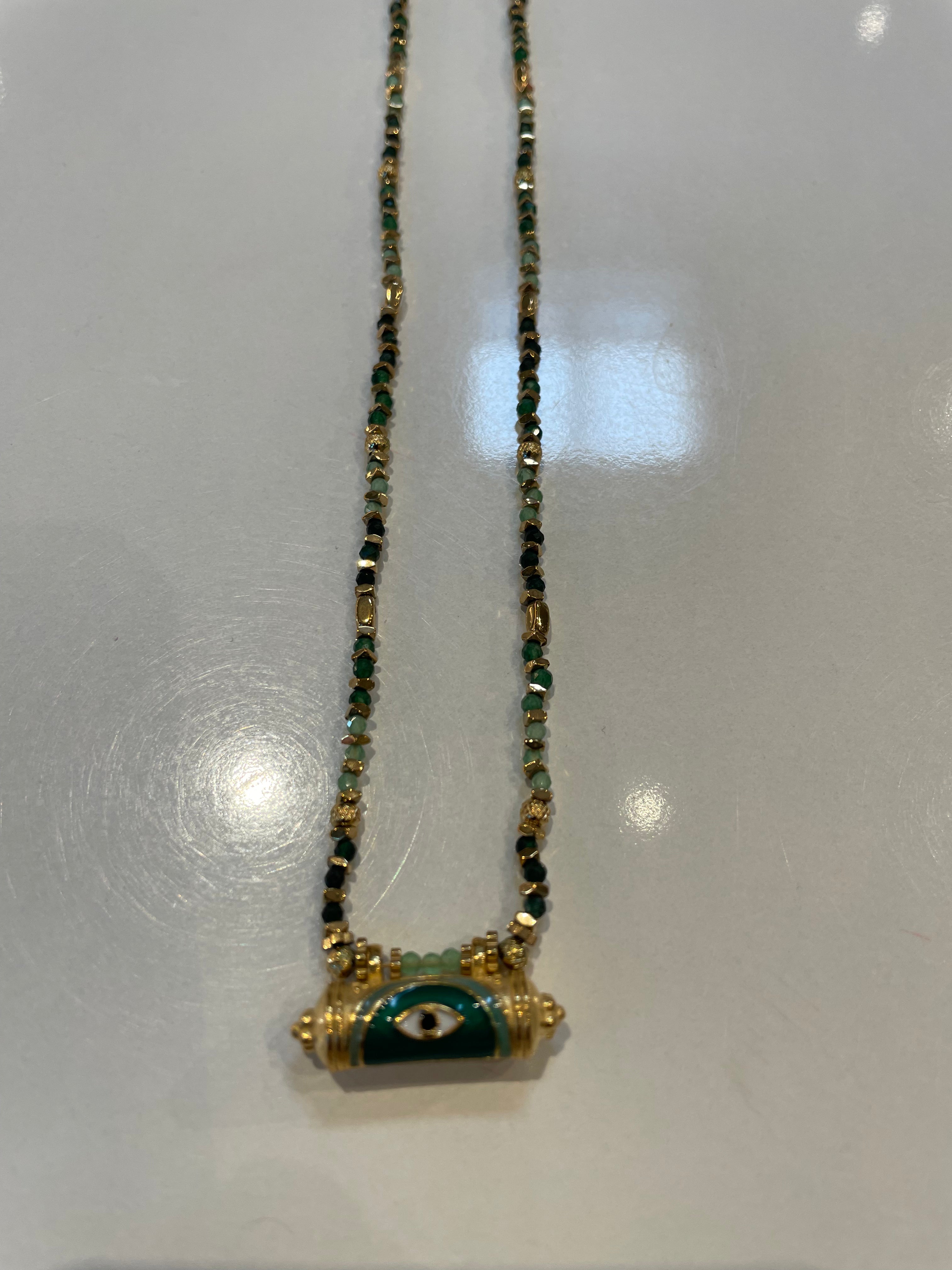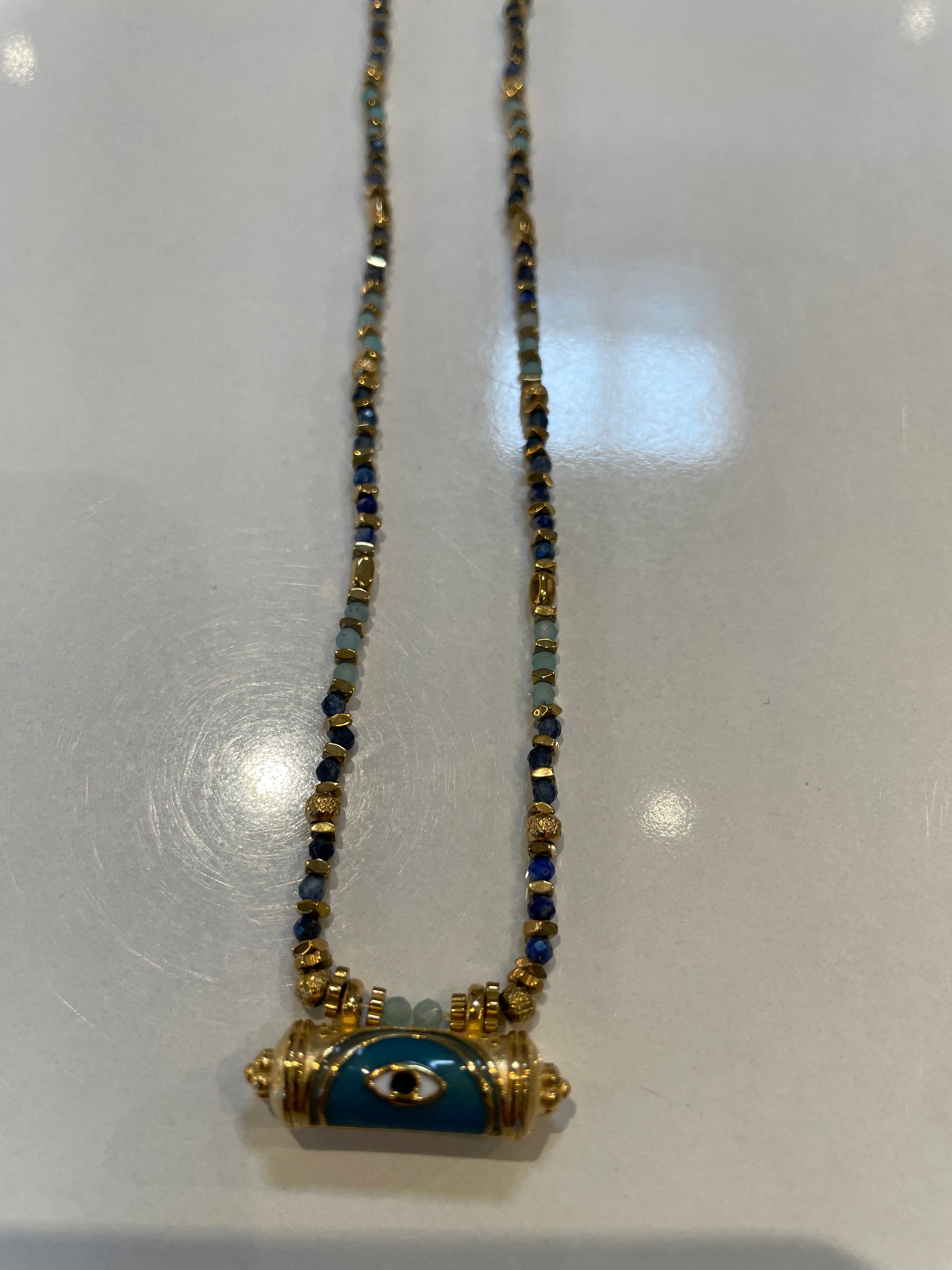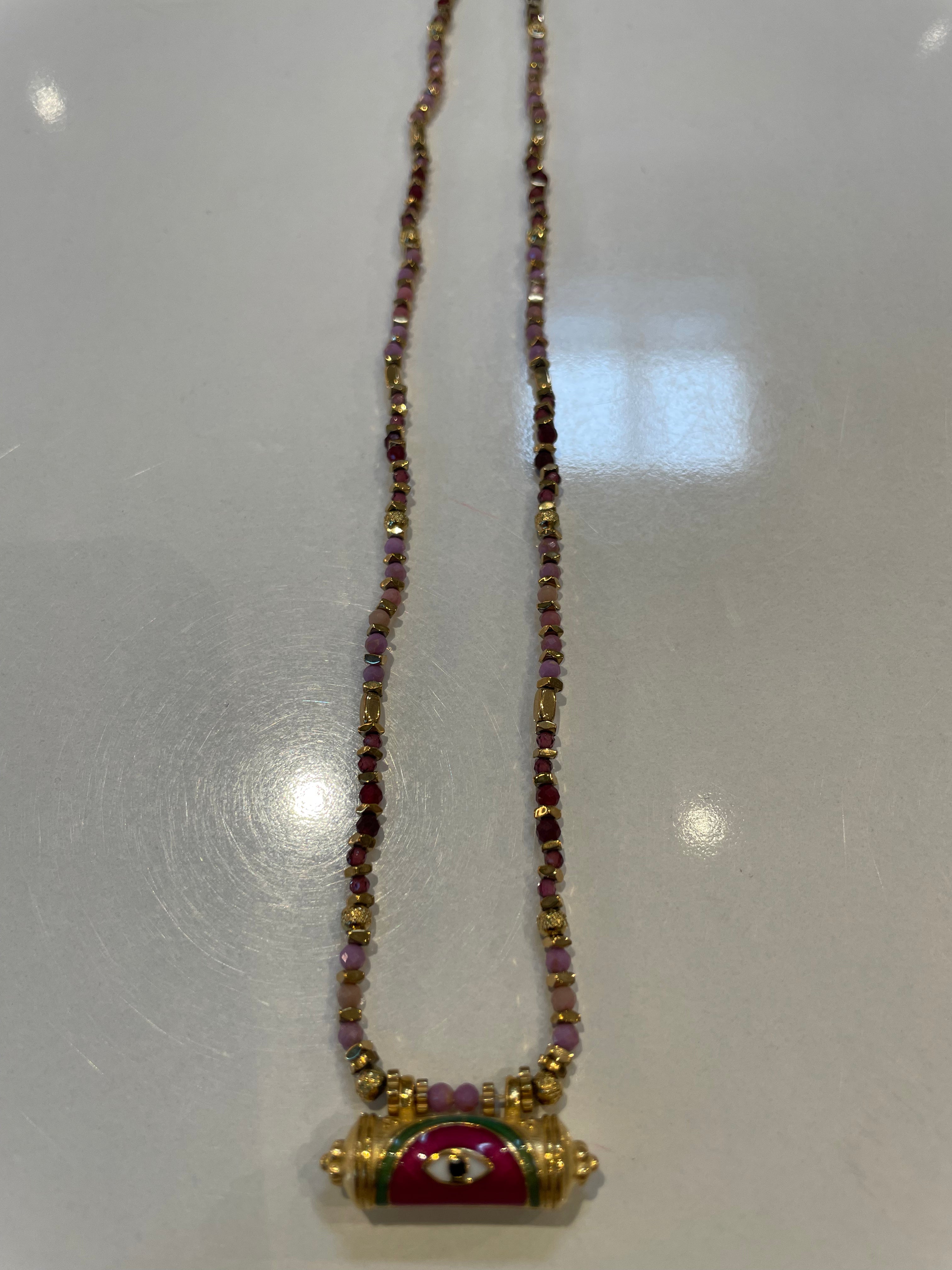 EVIL EYE Necklace with beaded chain with semi precious stones