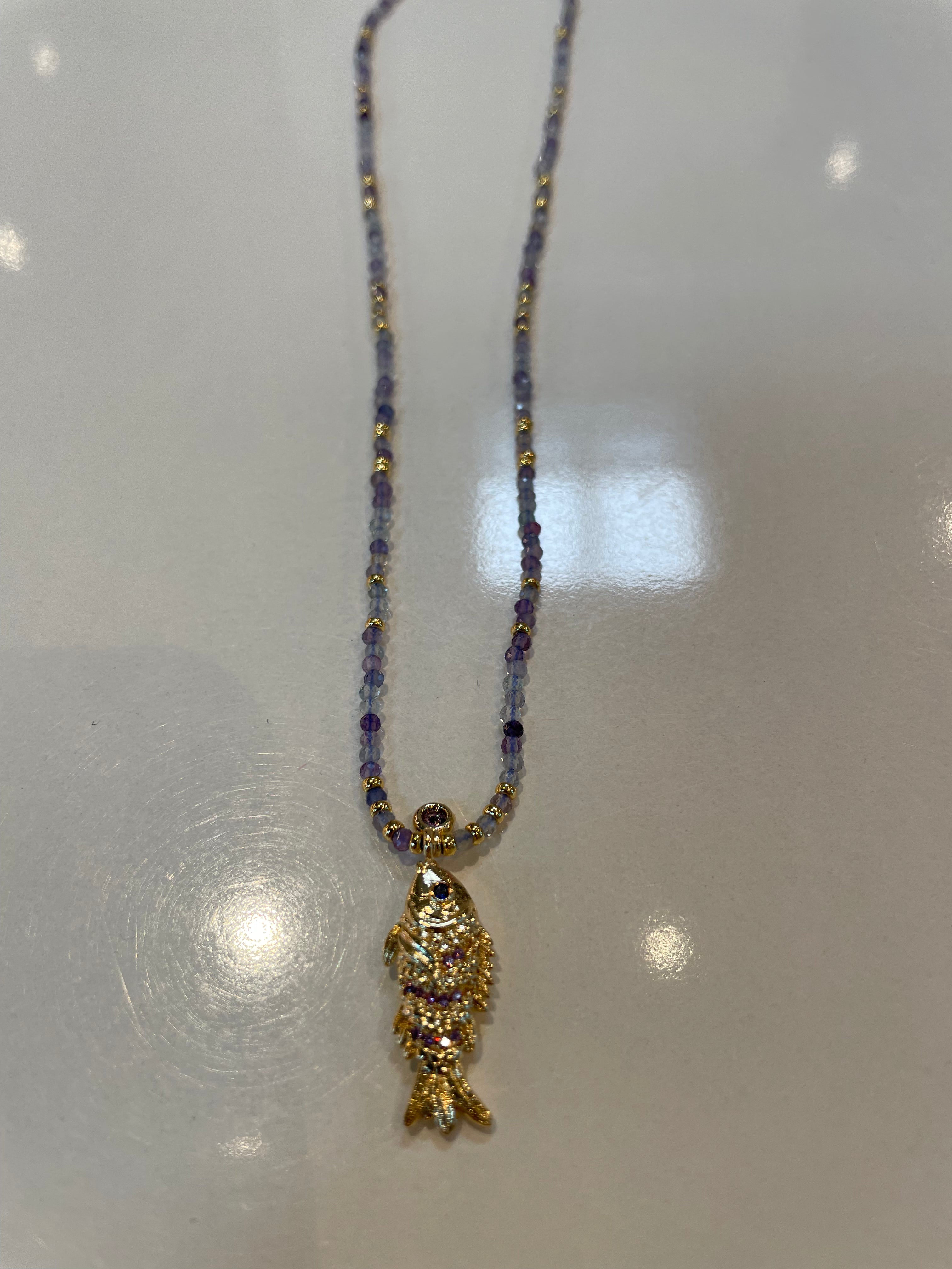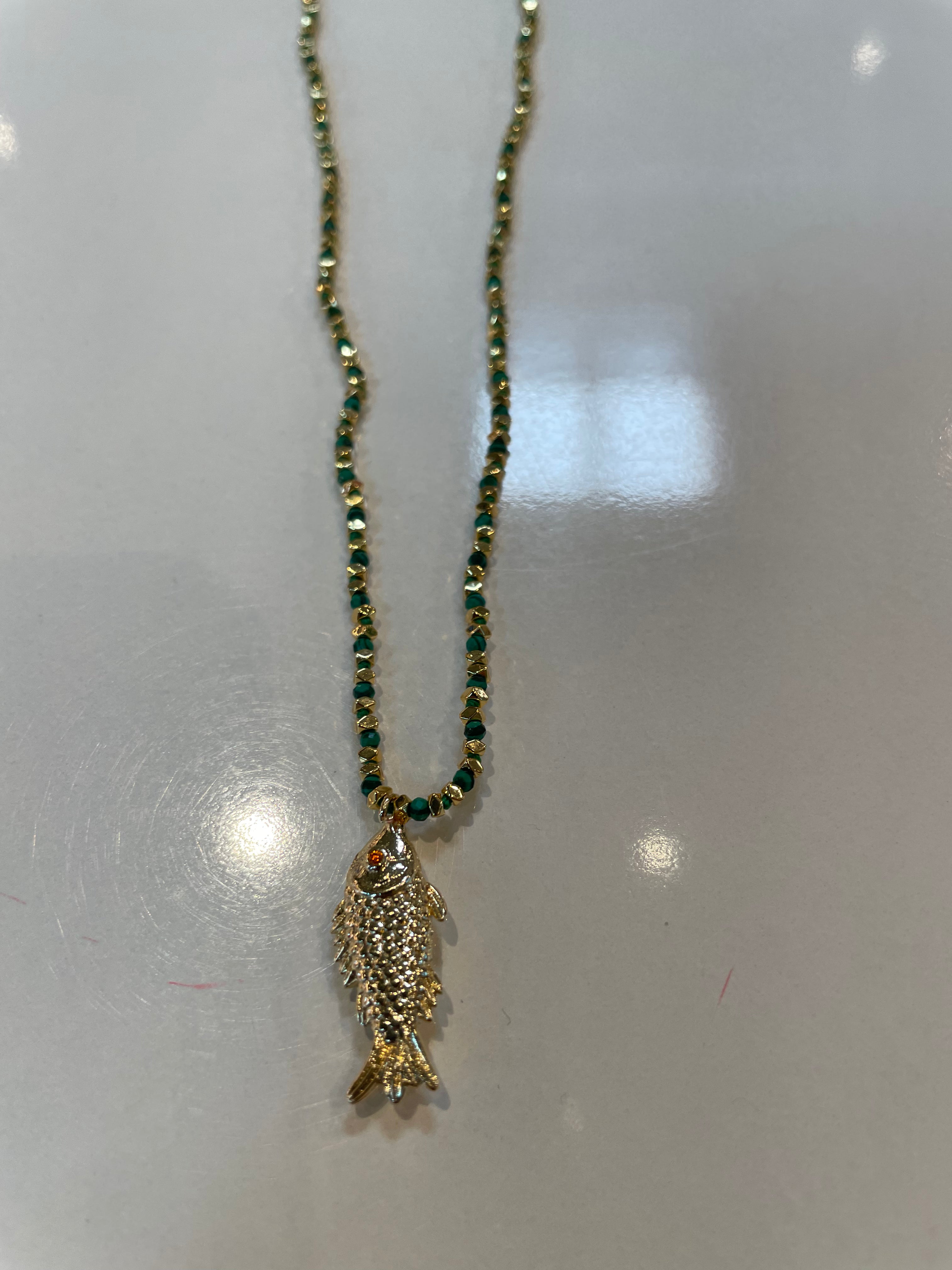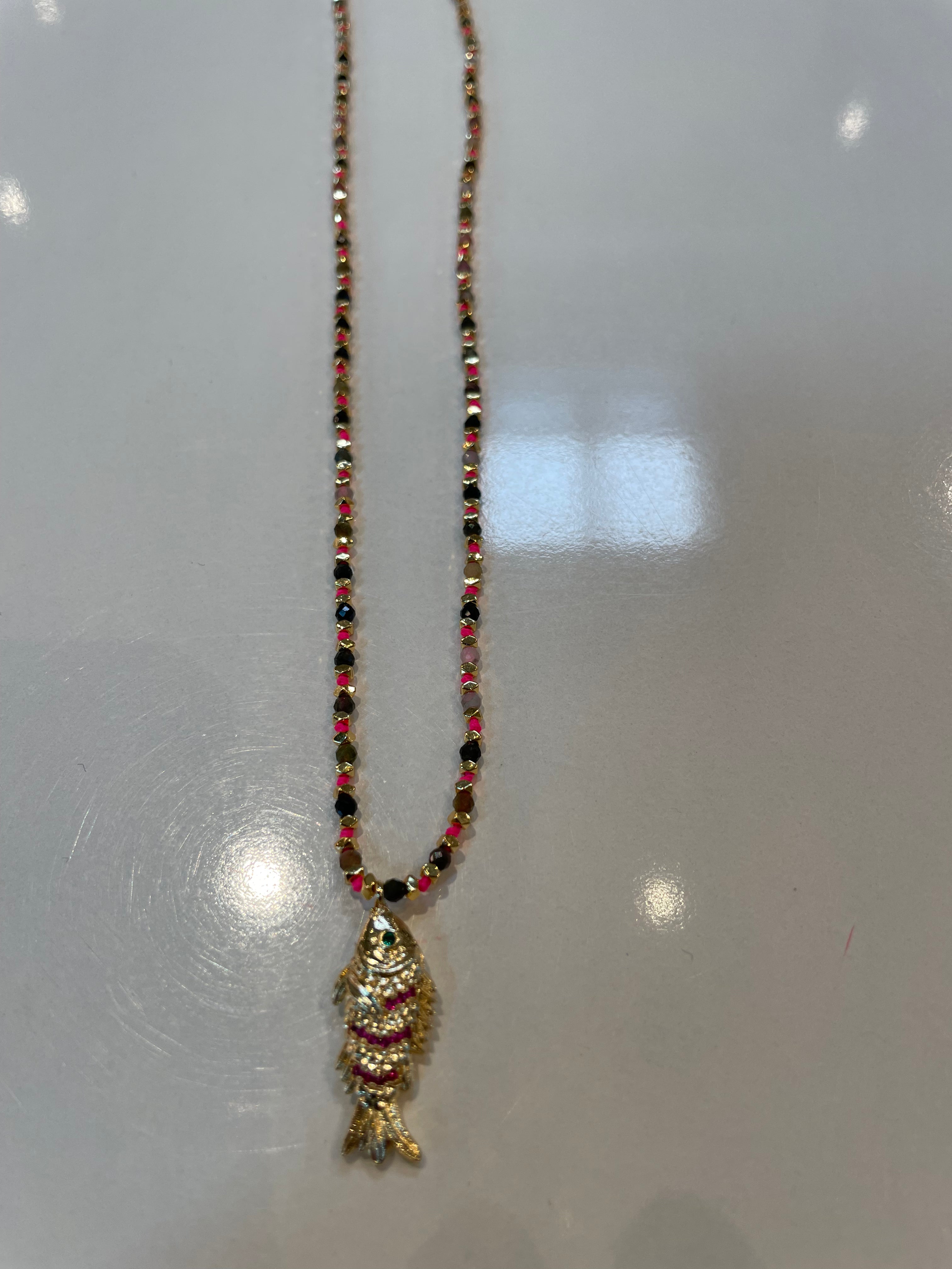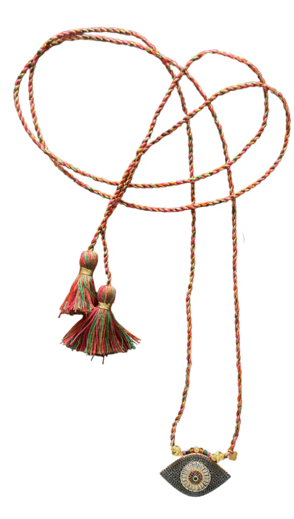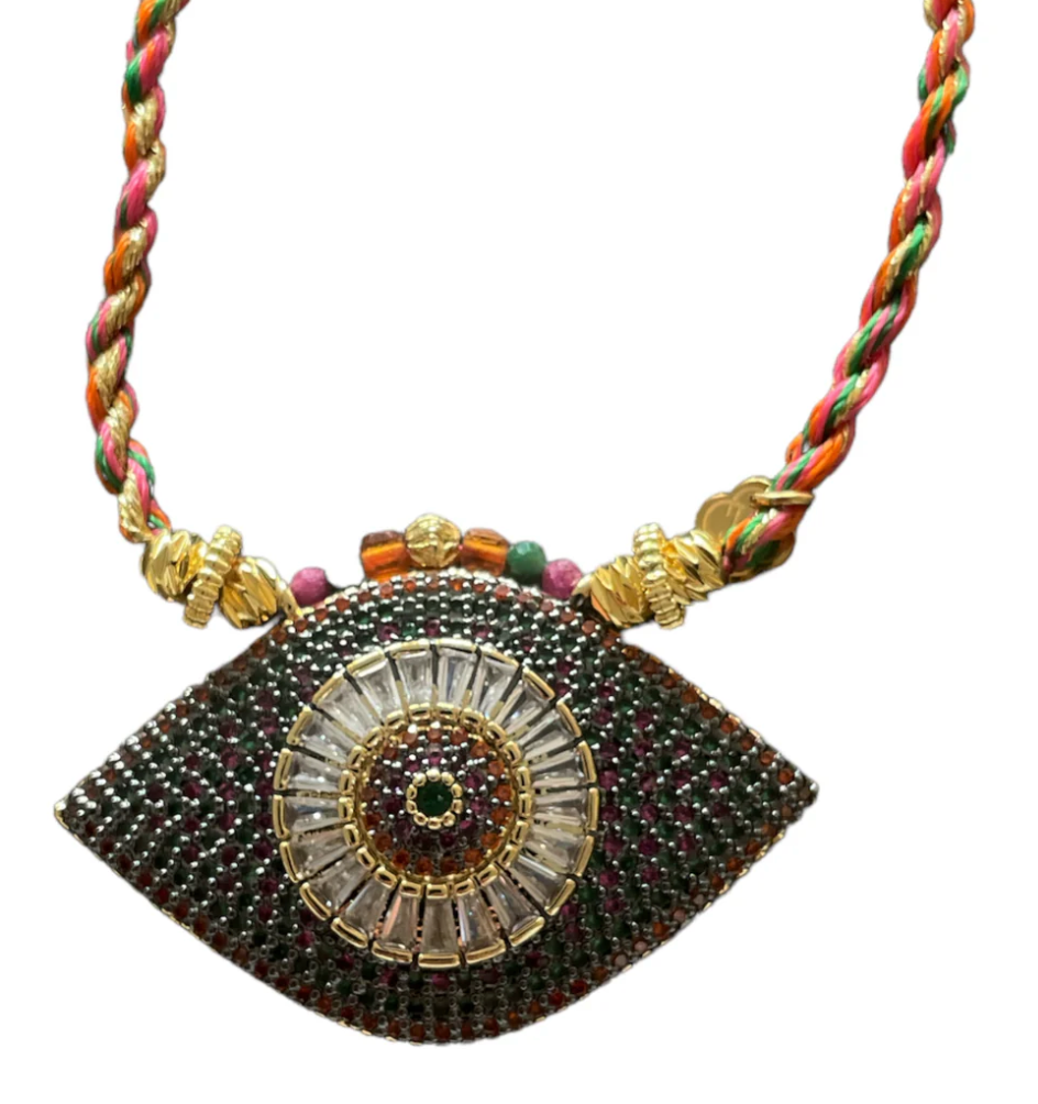 EVIL EYE Necklace with beaded chain with semi precious stones