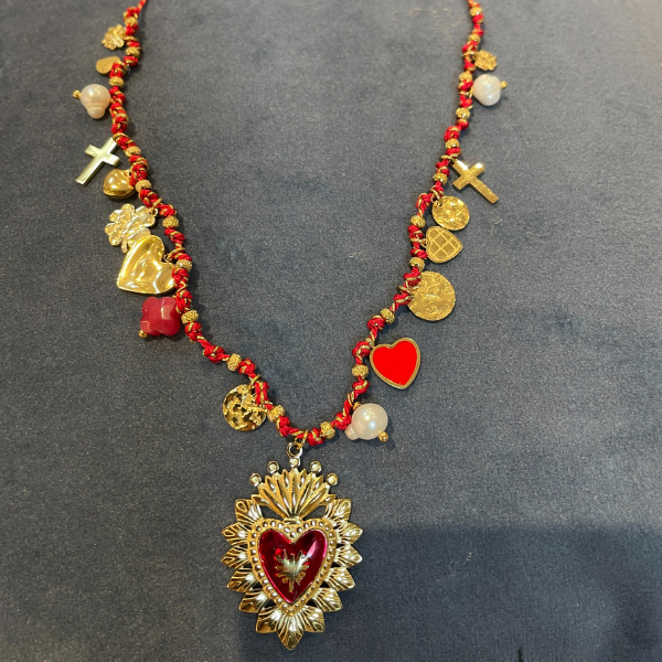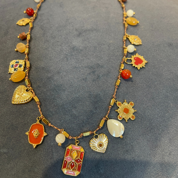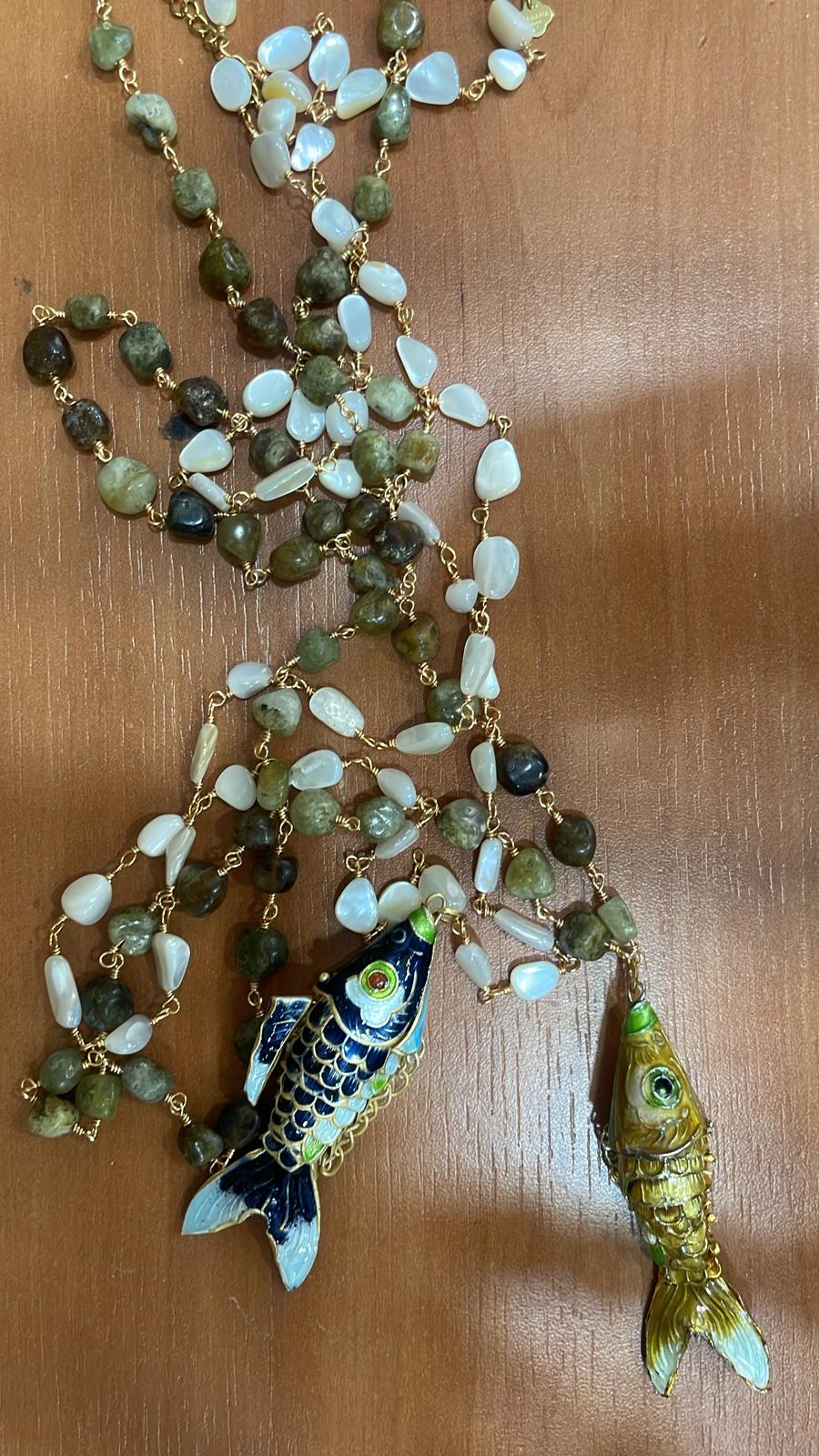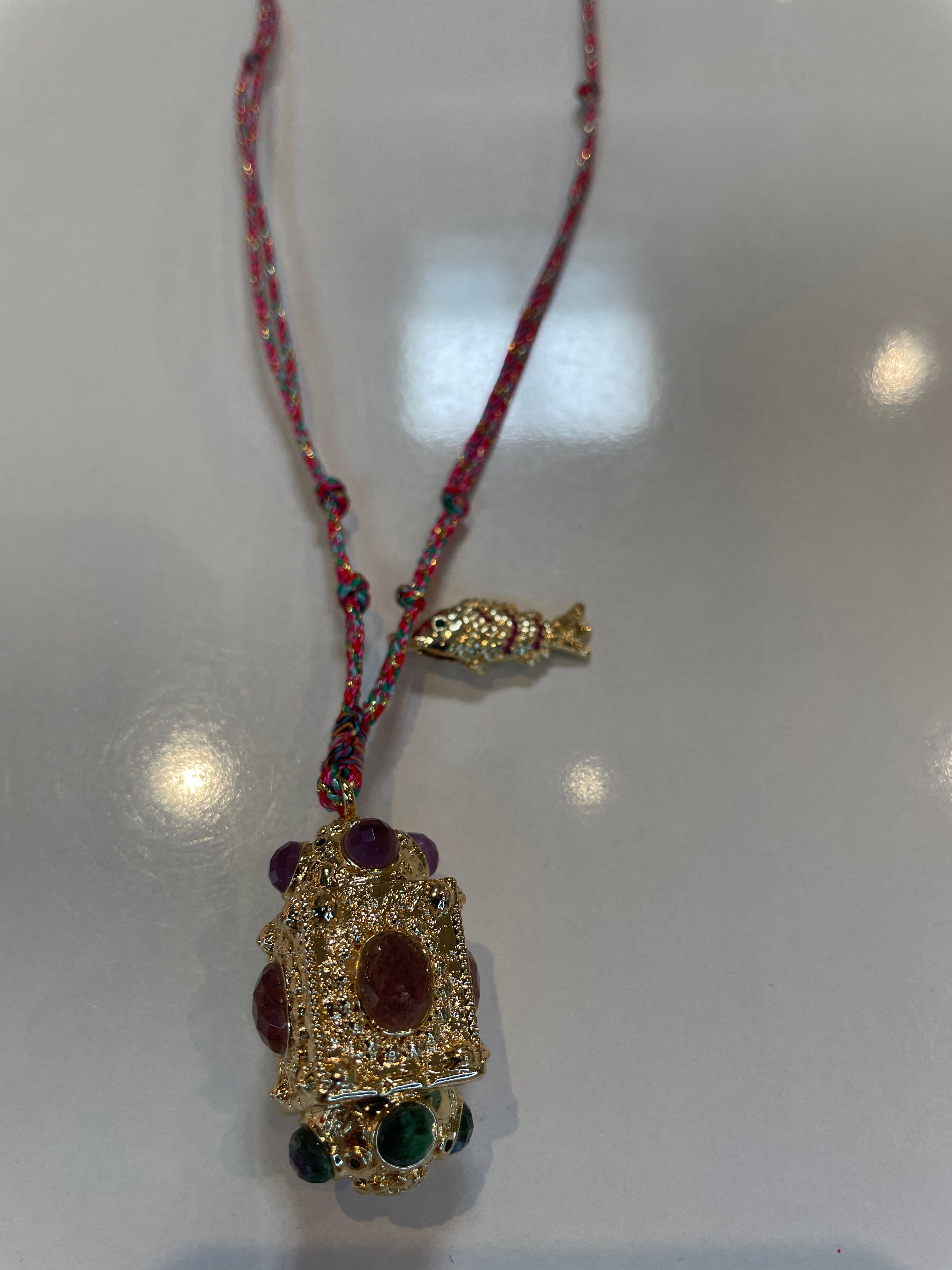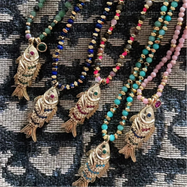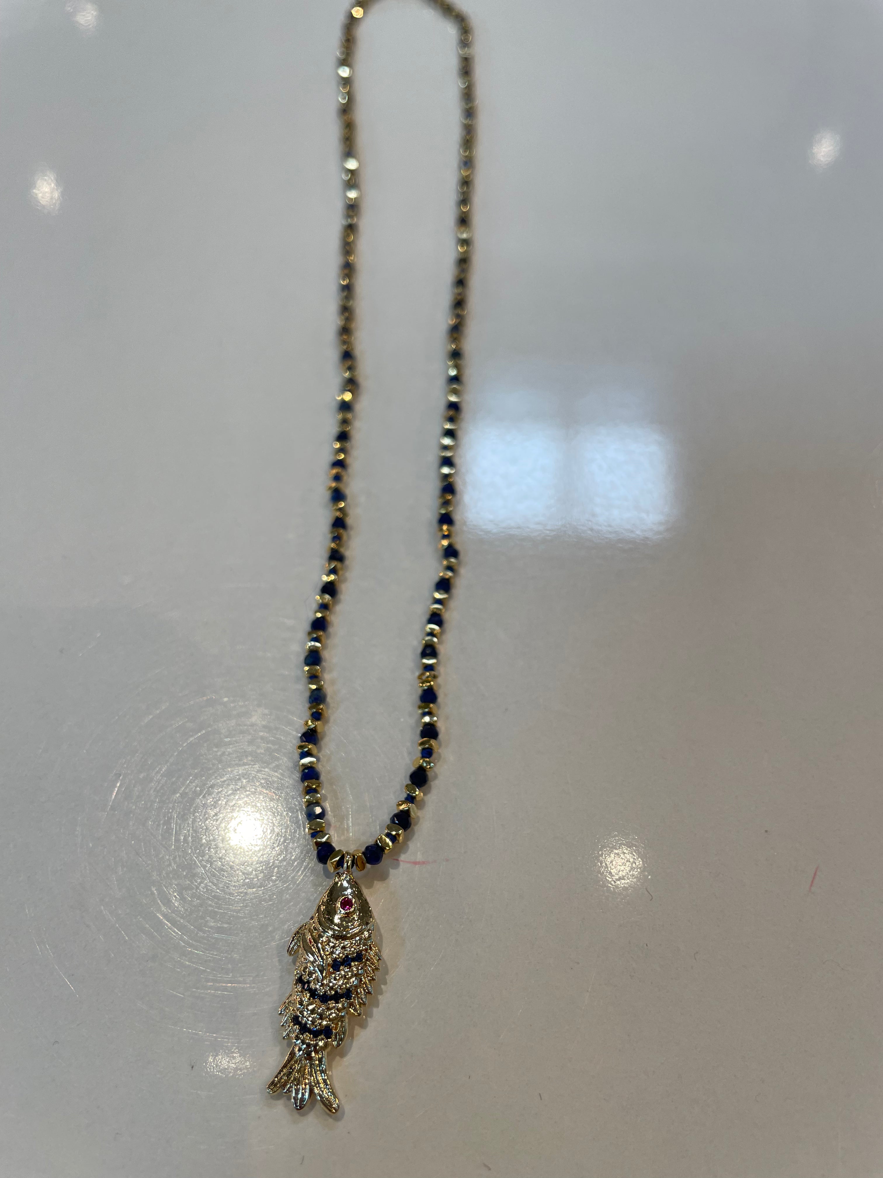 EVIL EYE Necklace with beaded chain with semi precious stones