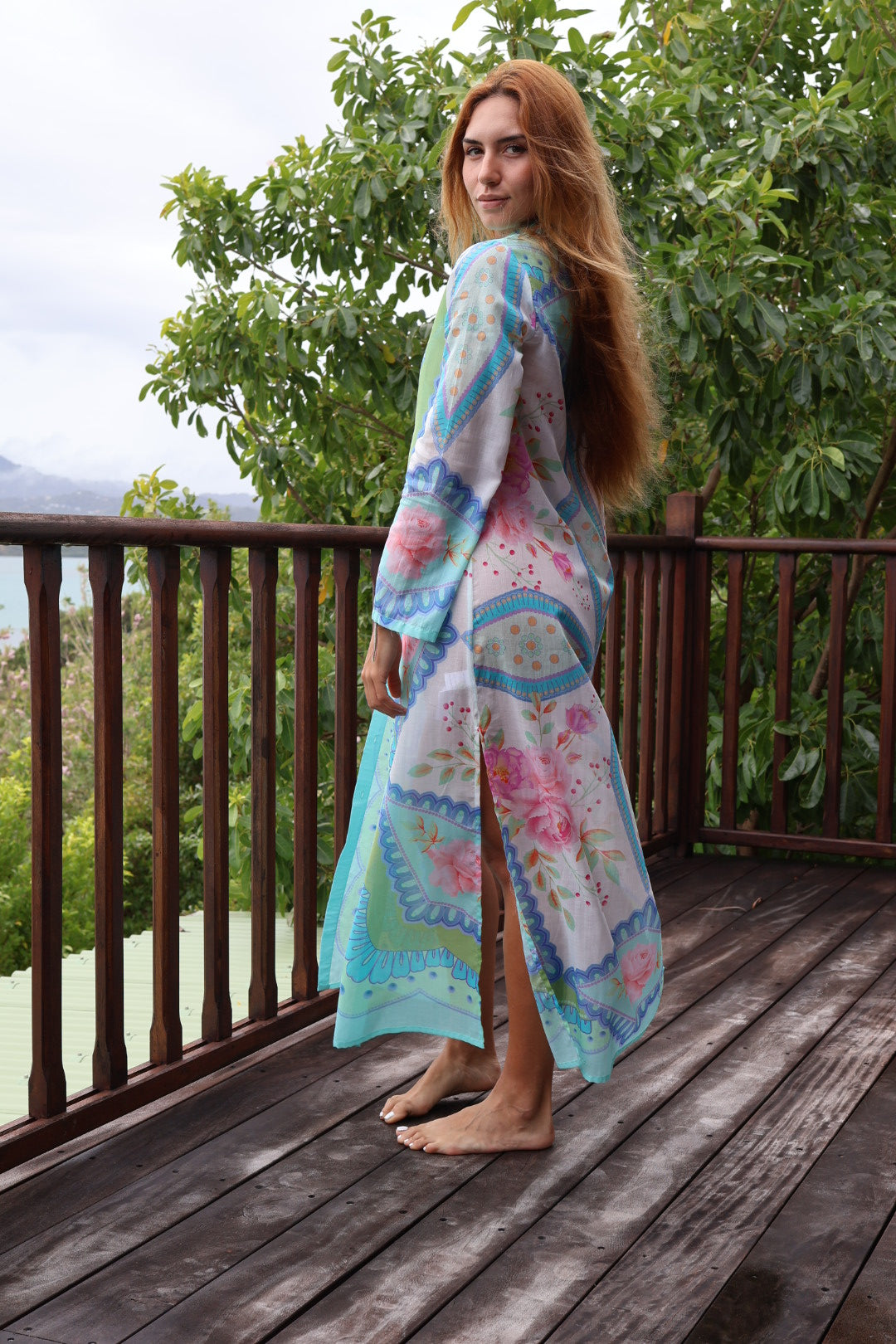 Elevate your wardrobe with our signature Giselle Kaftan, shirt/tunic/dress/jacket, a must-have versatile piece that offers endless styling options. Whether worn as a dress with a slip or opened up as a jacket paired with shorts and a tank top, this piece exudes chic versatility. Its timeless design allows you to cherish and style your kaftan in various ways throughout the years. Wear it belted for a sleek shirtdress look, accessorize with jewelry for an extravagant evening ensemble, or simply layer it over your bikini as a stylish cover-up. Crafted from our signature fabric, Airsoft Voile, this iconic style is available in sizes S, M, L, and XL.