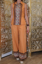 The sleeveless shirt is designed to pair beautifully with its matching print shorts, skirt, or pants. Yet it truly shines as a versatile standalone piece, effortlessly complementing denim shorts, white or cream trousers, and even beige tones. Perfectly suited to suede accessories, it blends seamlessly into a relaxed yet refined wardrobe and is destined to become a timeless staple.